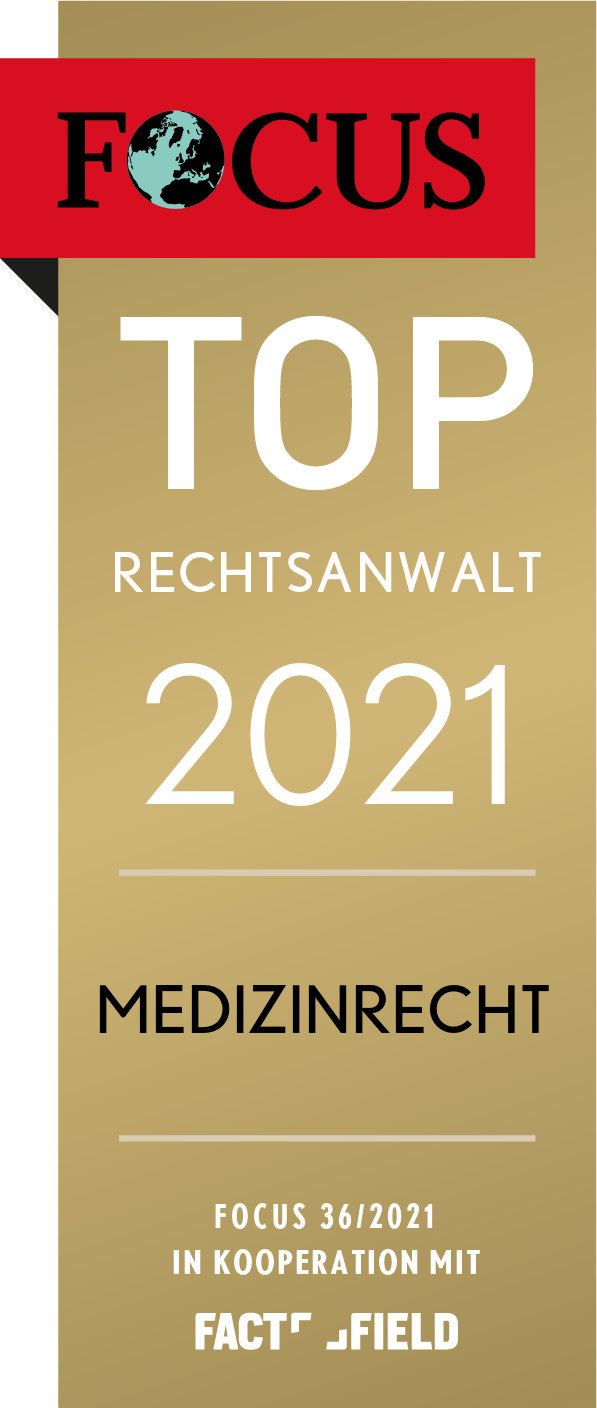 Herr Dr. Dorn wurde 2021 in dem Nachrichtenmagazin FOCUS unter die 18 deutschen Top-Rechtsanwälte im Medizinrecht gelistet.
