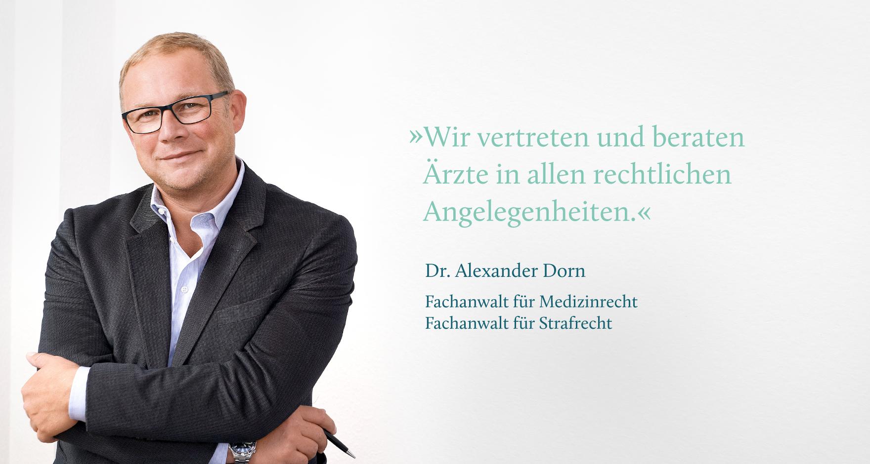 Dr. Alexander Dorn ist Fachanwalt für Medizinrecht und Fachanwalt für Strafrecht.