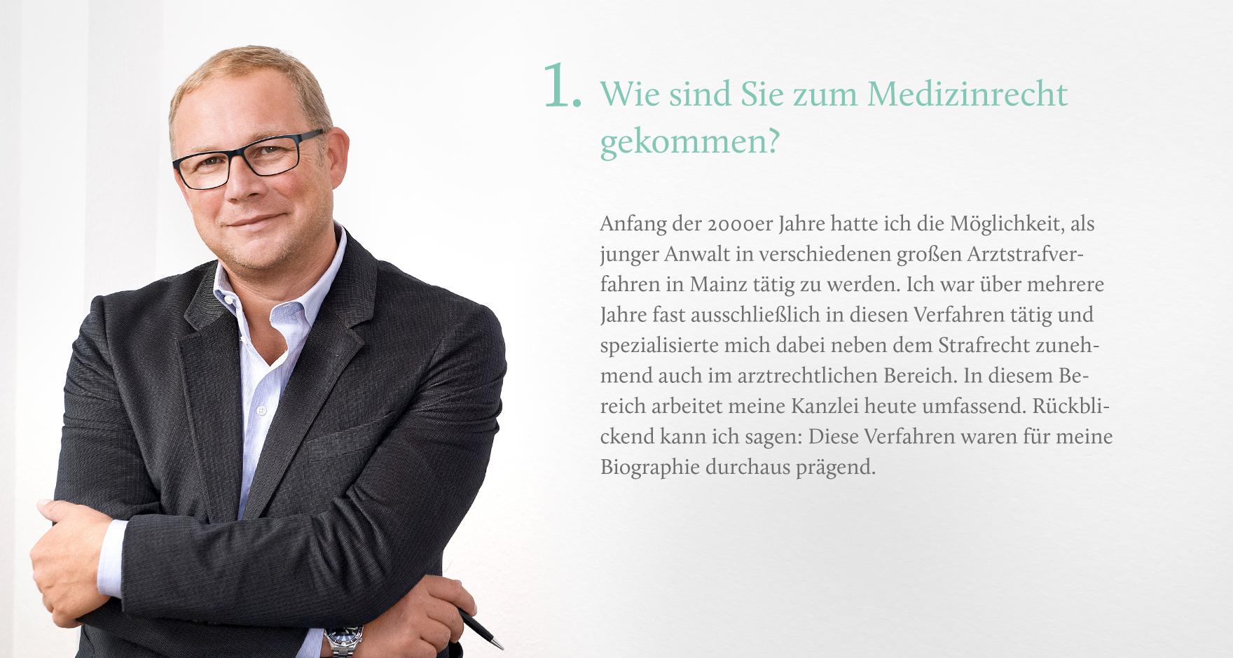 Er ist seit dem Jahr 2000 als Rechtsanwalt zugelassen und seitdem im Medizinrecht tätig.